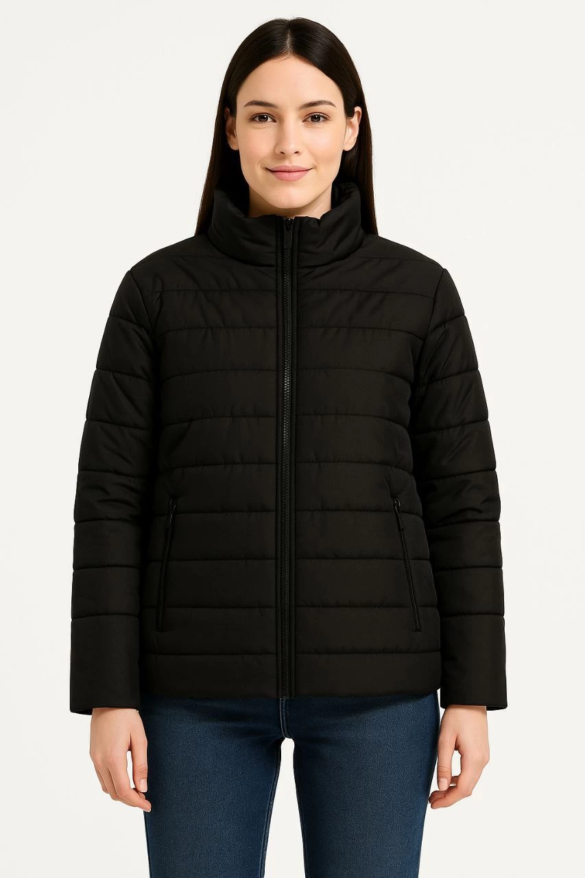 ASSEMA Kadın Bomber Mont Ceket - Su İtici Kumaş, Kapitone Astarlı, Fermuarlı, Kışlık - Siyah