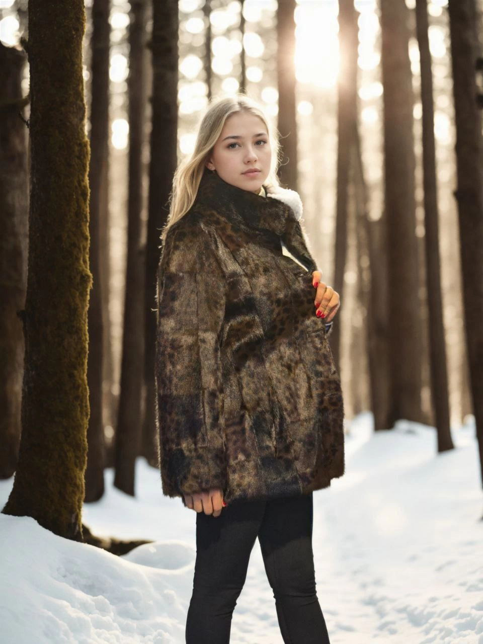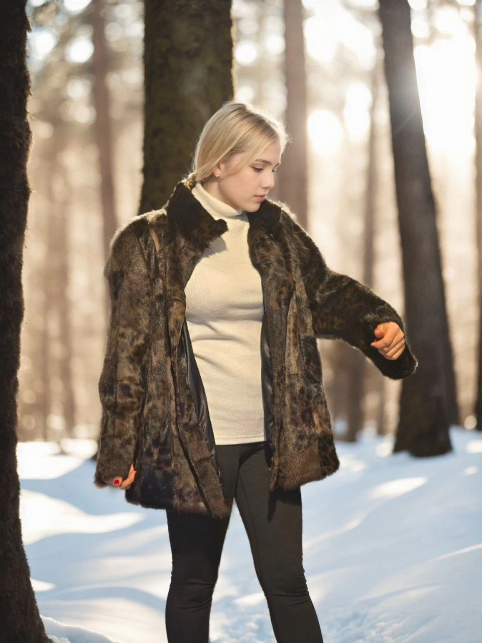 ASSEMA Kadın Premium Doğal Kürk Deri Ceket - Leopar